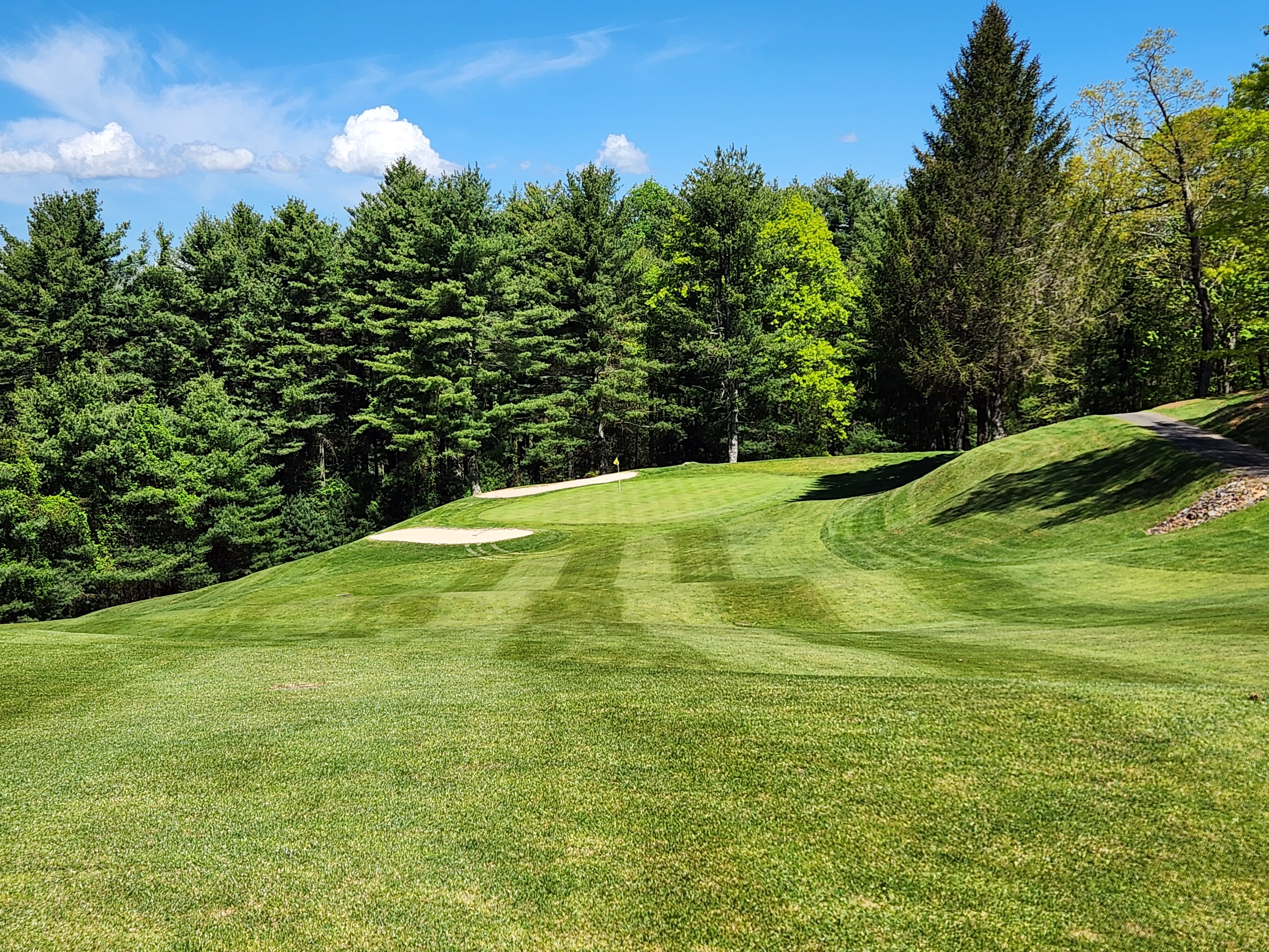 This course is a fantastic retreat away to Roaring Gap in the mountains of North Carolina. It provides plenty of up and down hill shots, scenic views, and a fun place to spend an afternoon secluded away with people that you like. The front 9 is tight fairways that requires precision off the tee. The back 9 is what steals the show. Every hole besides the 11th has some form of breath taking elevation change.